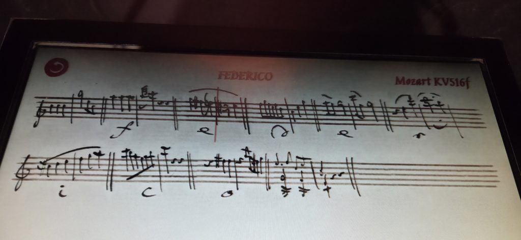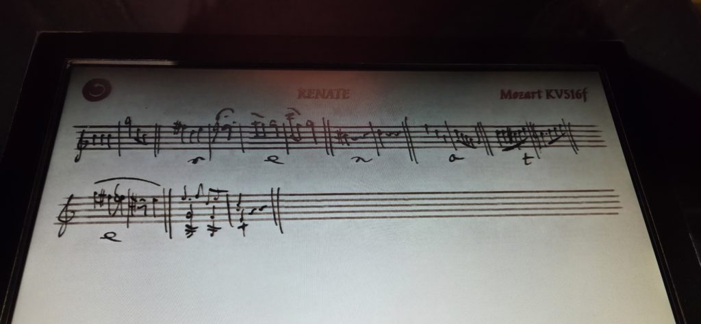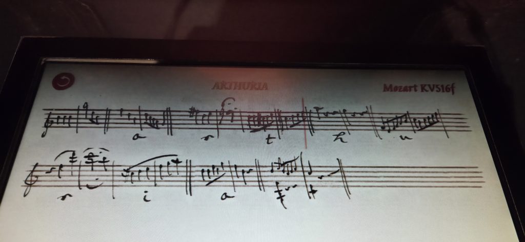 自分のメンタル以外にも重要な点として、脳内対話ができるか、「たとえどこかの作品発の誰かであったとしても、彼らが自分(=私自身)に向けて何かを伝えているように聞こえるか」というものがある。そして私にとっては、この「脳内対話」や「自分に向けての言葉と聞こえるか否か」は、自己投影やフィクトの目線で誰かを好きになっているかどうかを分ける、重要なポイントである。私は既に、彼が主役となったあのイベントストーリーを読みだした時点で、(これもまた彼のことを考えると申し訳ない話だが、嘘をつきたくはないので正直に振り返ると)彼の従姉の話と声が先に聞こえていた。そうして彼女とのやりとりを続け、当の彼への関心も大きくなっていく中で、好きな彼も自分の箱庭の住民且つ、関わってやりとりし合う相手となっていた。(図は、リアルでも直・間接的に二人と繋がりがある(繋がりを作っている)ことを示す一つとして、オーストリアのHaus der Musik(音楽博物館)の体験パネルで、自分が名前を(あの従姉弟二人の名前と、自分が作名したアルファベットでの呼び名)入力し、モーツァルトの曲のメロディを用いて作った2小節)