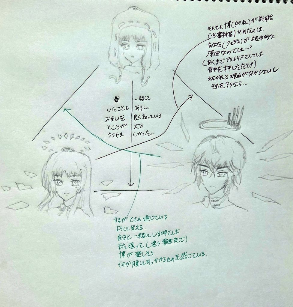 本人にとっては今でも不覚であろうし、且つ私も語りからどうしても外すことができずに後ろめたさがあるものだが、やはり彼の従姉への好みなしに興味を持てていたかどうかは怪しいことは本音だ。従姉にあたる彼女がイベントのストーリーに出るということで、どんな話か知りたいなと思って当のストーリーを真面目に読むことにした。一方、蓋を開けると当のストーリーの主役級は例の彼の方であったといういわくだった。