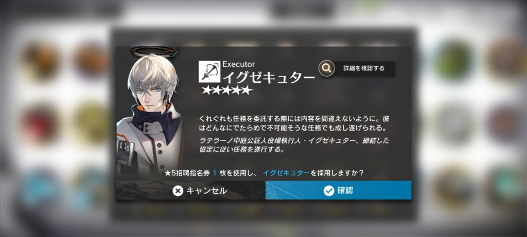 信頼度150%になってからは、もう昔の作品や好きだった相手とはお別れすることを考える段階であった。そのため、2024年にゲームをプレイし出して間もない頃に貰ったスカウト券を取り出し、初期の頃の彼をお迎えした。