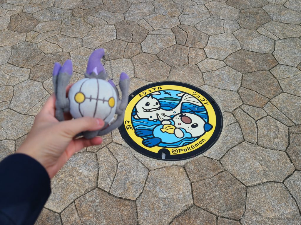鳥羽一番街から、駅とは逆方向の出口に出ると、海(伊勢湾)を見渡せる公園が出てくる。ドルフィン公園と呼ばれるらしい。ここにもポケふたである。ミジュマルとジュゴン。モチーフは恐らく鳥羽水族館だろう。ラッコとジュゴンがいることは何かのきっかけで以前ネットで見て知っていたが、日本でジュゴンの飼育が鳥羽水族館だけであることは今回改めて初めて知った。