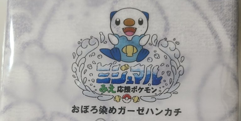 ありがたいことに、ミジュマルスタンプラリーに参加する前にこっそり応募していたとあるキャンペーンに当選され、「おぼろ染めミジュマル ガーゼハンカチ」を受け取った。(商品詳細は以下のリンクの通り)